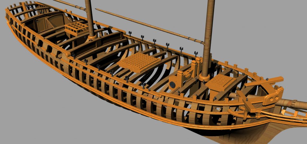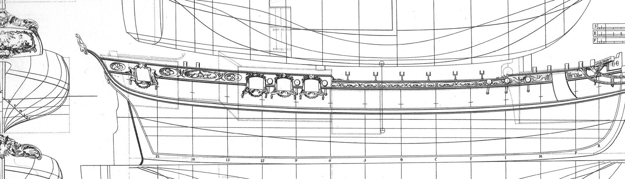Als Vorlage dienten die Spant und Seiten/Aufrisse aus dem Buch von „Fredrik Henrik af Chapman“.