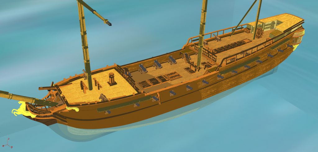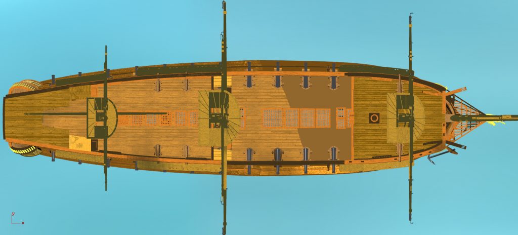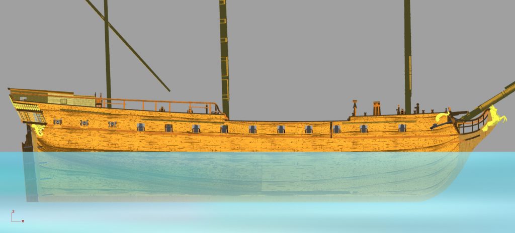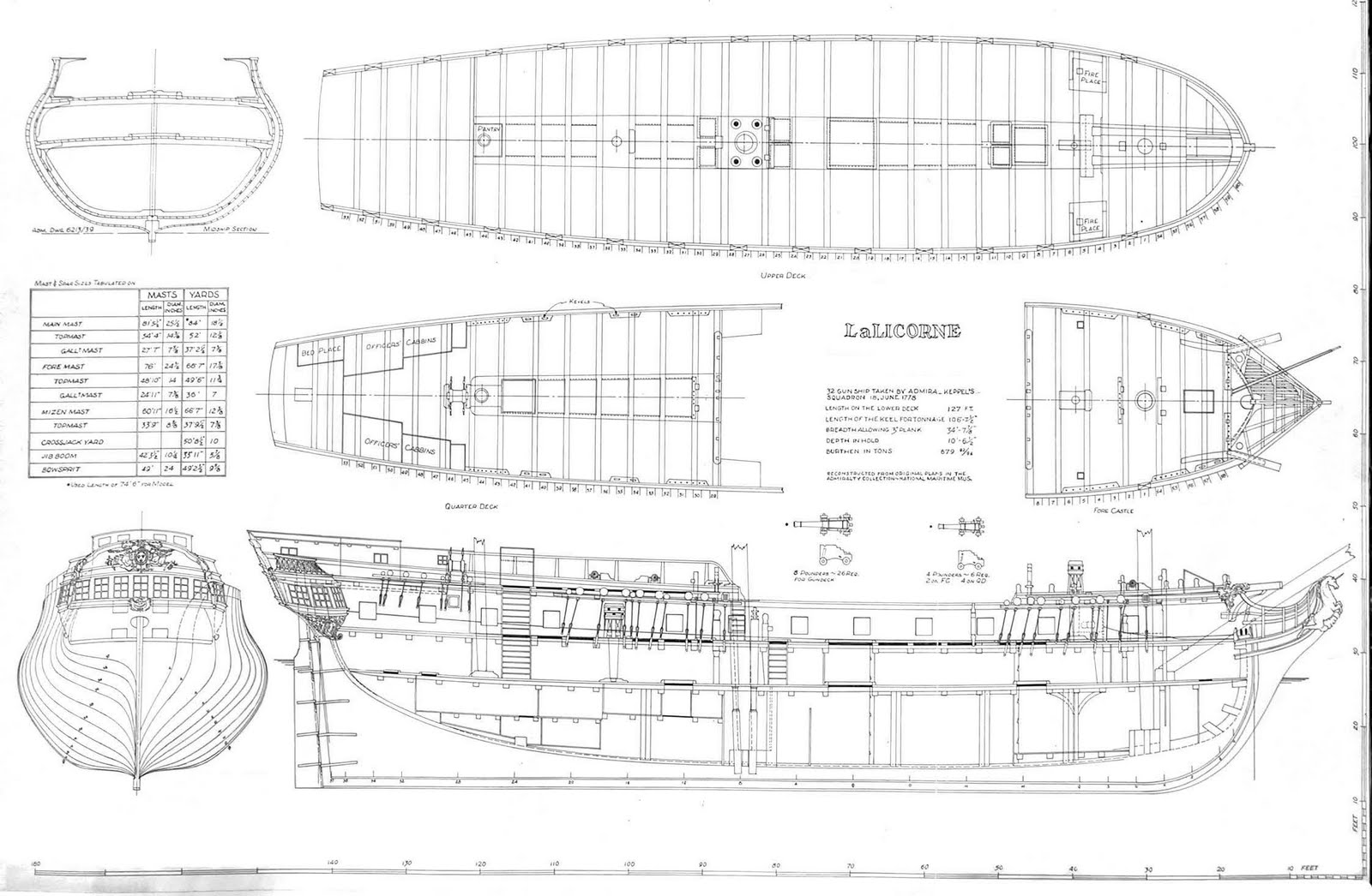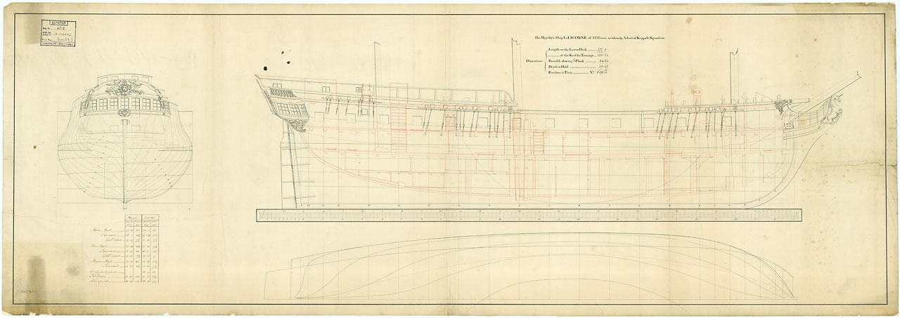 Licorne class, 30-gun design of 1754 by Jean Geoffroy, with 26 x 8-pounder and 4 x 4-pounder guns